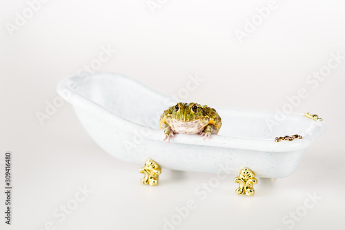 Cute Green Frog In Small Luxury Bathtub Isolated On White Buy This Stock Photo And Explore Similar Images At Adobe Stock Adobe Stock