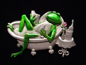 Jj" Jonette Jewelry Silver Pewter 'Diva Frog In Bathtub' Pin Ebay